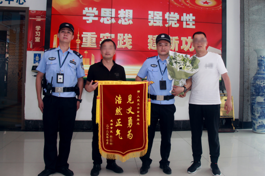 7月10日上午,两位市民来到锦江监狱,为二管区管教民警谢兵送来一面锦旗,感谢他正义出手,维护群众切身利益。