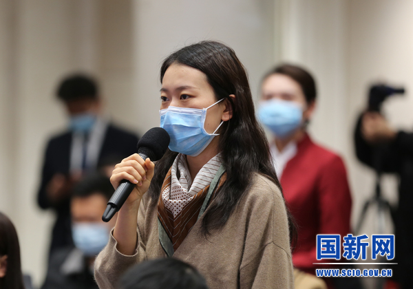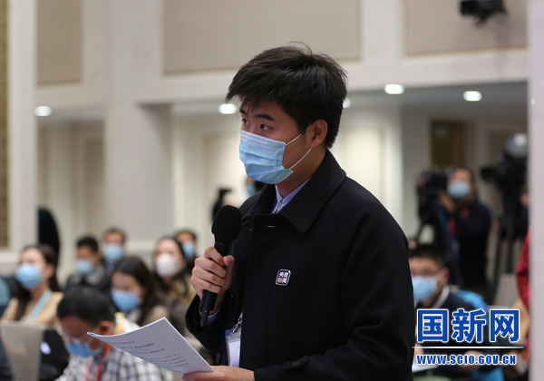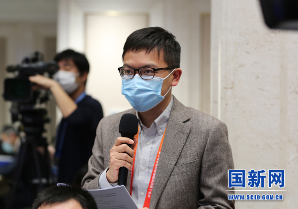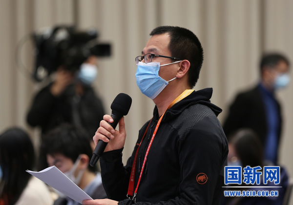中央广播电视总台央视新媒体记者提问(刘健 摄)