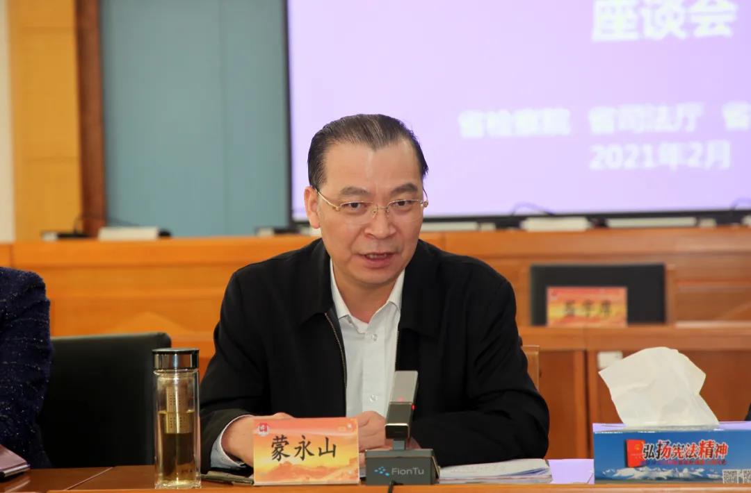 2月5日下午,省检察院党组书记、检察长蒙永山带领省院有关部门负责同志到省律师协会,就深入学习贯彻习近平法治思想、加强检律协作、推动法律共同体建设、促进司法公正走访交流。省司法厅党组书记、厅长刘天海,省检察院副检察长张杰,省司法厅副厅长、省监狱管理局局长朱战民,省律师协会会长马福祥一同交流座谈。