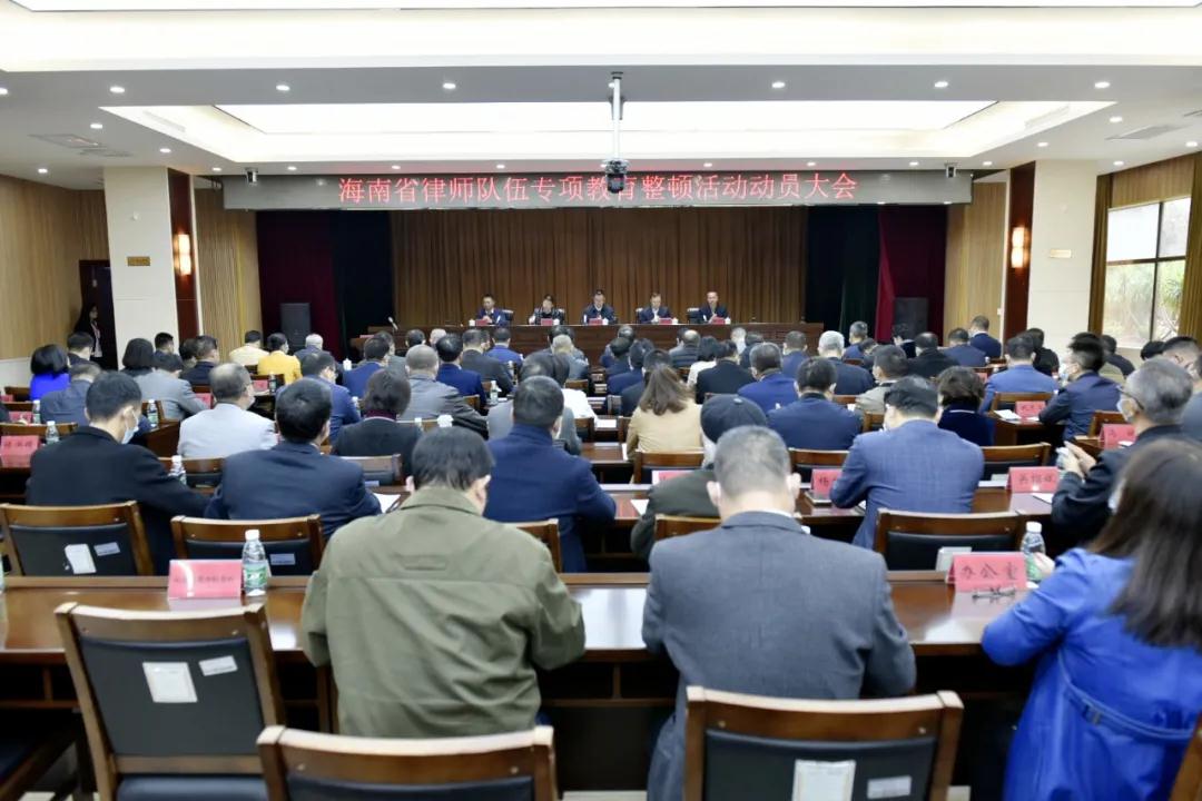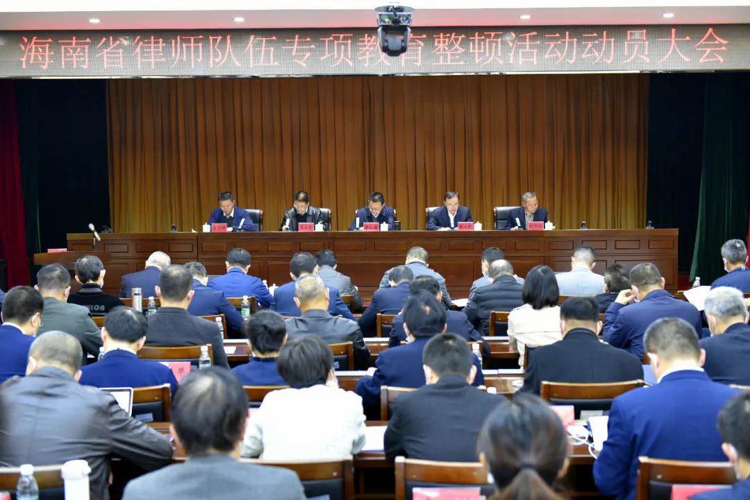 12月23日下午,省司法厅召开全省律师队伍专项教育整顿活动动员大会,厅长郑学海出席会议并作动员讲话,副厅长陈文彬宣读《海南省司法厅关于开展全省律师队伍专项教育整顿活动的实施方案》。省委政法委、省委两新组织工委有关领导,省司法厅领导班子成员、一级巡视员、二级巡视员出席会议。厅政治部主任王小龙主持会议。