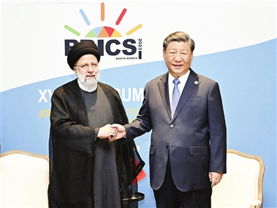 习近平祝贺伊朗成为金砖成员。习近平强调,经过各方共同努力,此次金砖领导人会晤作出扩员决定,这是历史性事件。新成员都是具重要影响力的国家,相信将对世界产生重大影响。中方愿同伊朗在金砖等多边平台上加强合作,推动多边主义健康强劲发展。