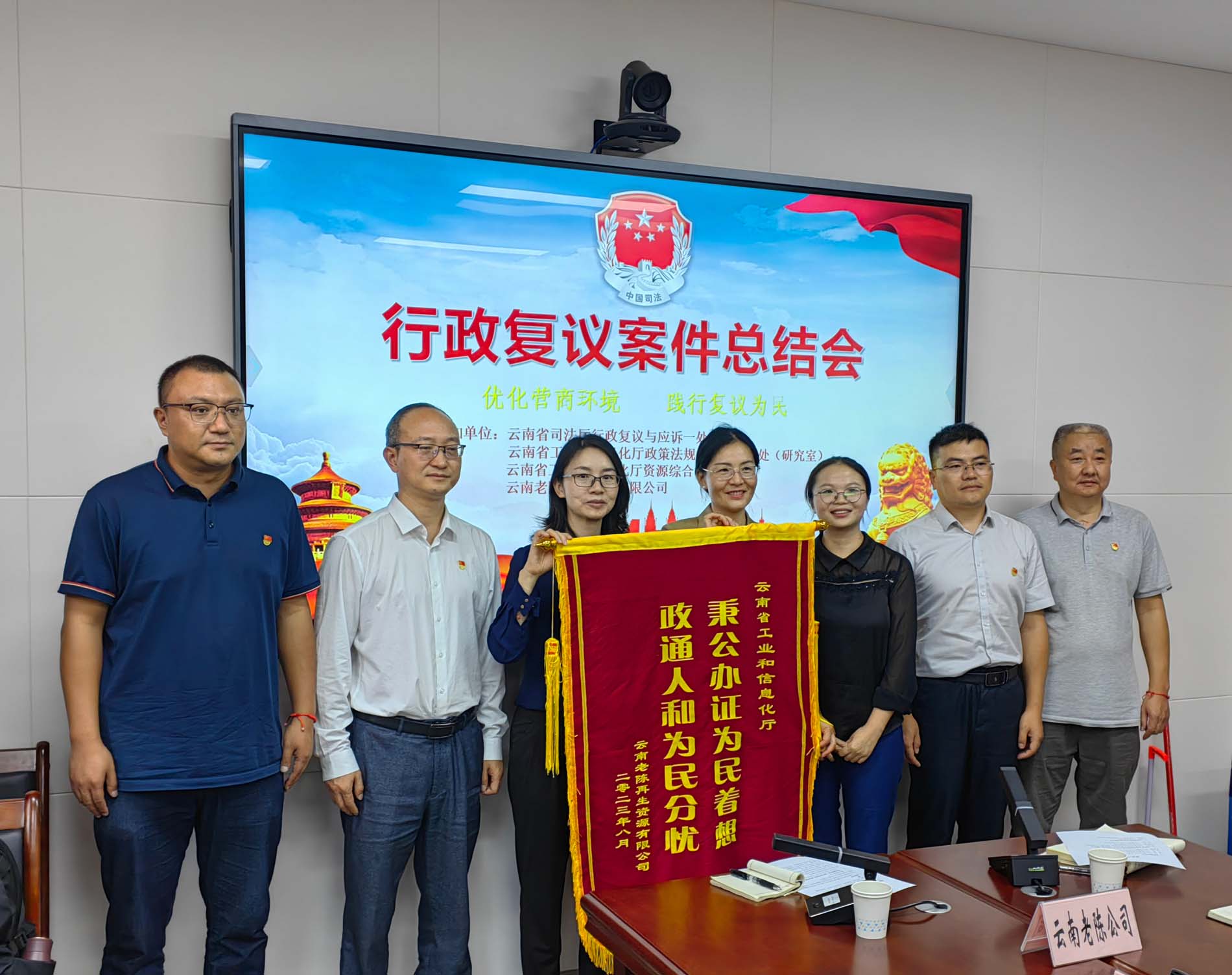 2023年8月16日,云南某再生资源公司向云南省人民政府行政复议办公室赠送了一面写有“复议为民持正义亲清政商促民企”的锦旗,感谢在省复议办的主动对接和积极协调下,公司涉及的行政争议得到了实质化解。与此同时,该公司也向云南省工业和信息化厅赠送了一面写有“秉公办证为民着想政通人和为民分忧”的锦旗,对省工信厅有效指导公司开展资质申报工作表示感谢。这是省复议办在行政复议案件受理前,通过磋商协调机制实质化解涉企行政争议,实现“多赢效果”的生动缩影。