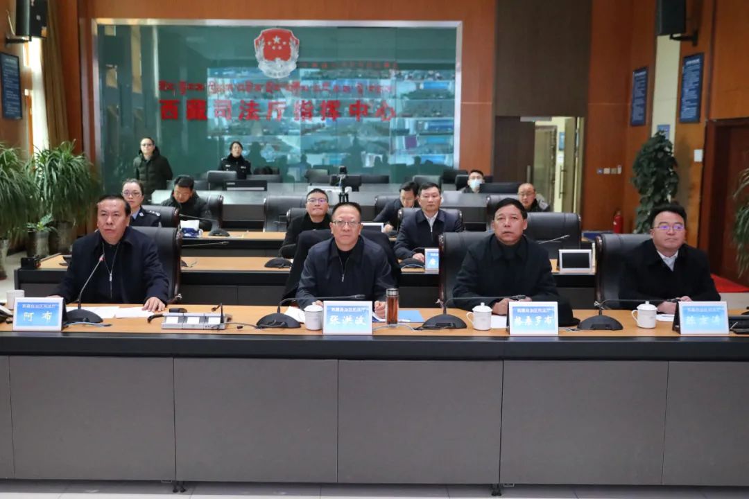 司法厅党委书记阿布代表区司法厅党委和全区司法行政各级各部门向自治区党委、政府以及区党委政法委一直以来的关心关爱表示衷心感谢。表示,全区司法行政系统要坚决贯彻落实党中央和自治区党委、政府以及司法部和区党委政法委各项决策部署,严格落实自治区国安指挥部既定工作部署,站在增强“四个意识”、坚定“四个自信”、做到“两个维护”的政治高度,知责于心、担责于身、履责于行,全力做好保平安护稳定各项工作,确保全区司法行政系统实现持续安全稳定,以优异成绩向建党100周年和西藏和平解放70周年献礼。