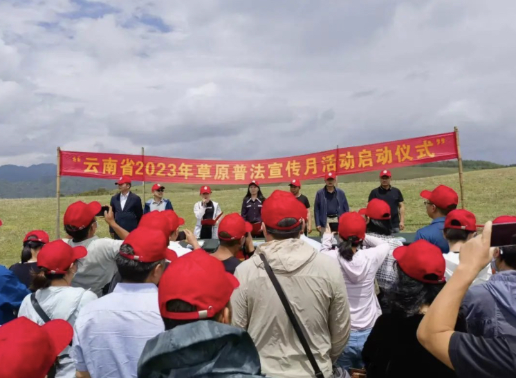 6月草原风光秀丽、景色宜人,云南省林草局在腾冲东山草原组织2023年草原普法宣传月活动启动会,现场发放宣传资料、讲解法律法规、接受群众咨询。这是云南省各部门积极履行“谁执法谁普法”普法责任制,根据重要普法节点提示单开展的普法活动之一。