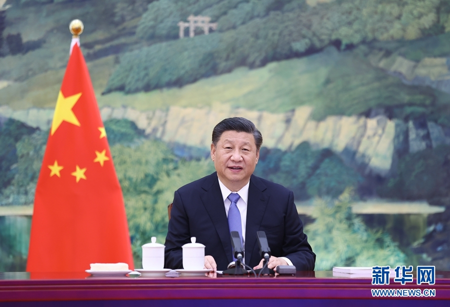 1月27日,国家主席习近平在北京以视频连线方式听取了澳门特别行政区行政长官贺一诚2020年度的述职报告。新华社记者 刘彬 摄