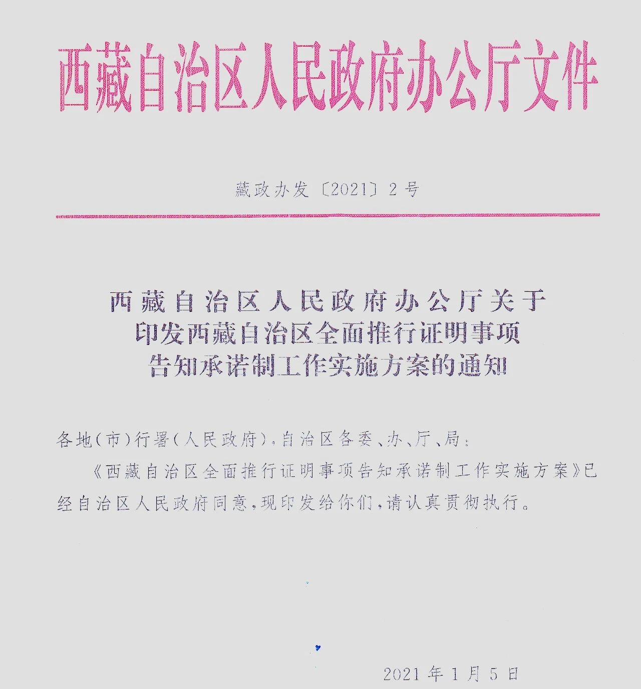 西藏自治区全面推行证明事项告知承诺制【内附方案全文】