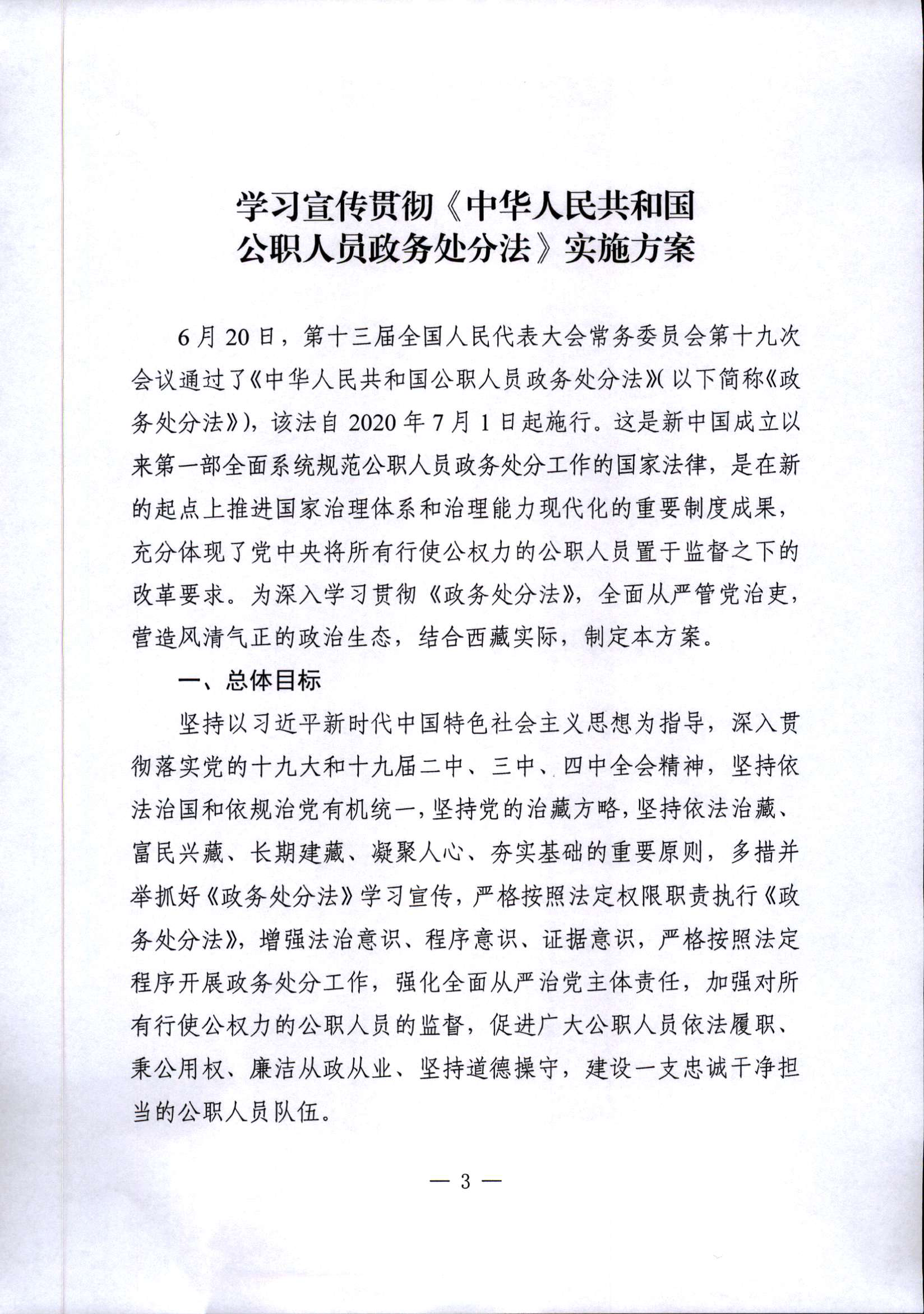 为深入推进《中华人民共和国公职人员政务处分法》在全区的学习宣传、贯彻落实,提高政务处分工作规范化、法治化水平,7月31日,西藏自治区监察委员会、区普法办联合印发《学习宣传贯彻<中华人民共和国公职人员政务处分法>的实施方案》,要求各市(地)监委、普法办,自治区纪委监委各派驻、派出机构和区(中)直各单位普法办认真贯彻落实。
