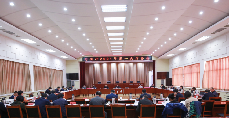 2021年3月4日,内蒙古司法厅党委书记、厅长郝泽军主持召开司法厅2021年第一次厅务会,研究讨论了《内蒙古自治区重大行政决策目录管理办法(送审稿)》《内蒙古自治区司法行政系统突发事件应急预案》《内蒙古自治区司法厅信息化建设项目全流程管理办法》等15个制度性文件。