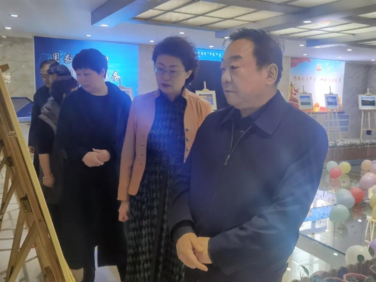 郝泽军厅长凝神细看展出的硬笔书法和摄影作品,不时停下脚步听讲解,询问作品情况,对机关文化建设的新成效充分肯定。