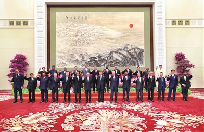 10月18日上午,国家主席习近平在北京人民大会堂出席第三届“一带一路”国际合作高峰论坛开幕式并发表题为《建设开放包容、互联互通、共同发展的世界》的主旨演讲。这是会前,习近平同出席高峰论坛的外国国家元首、政府首脑和国际组织负责人等国际贵宾集体合影。