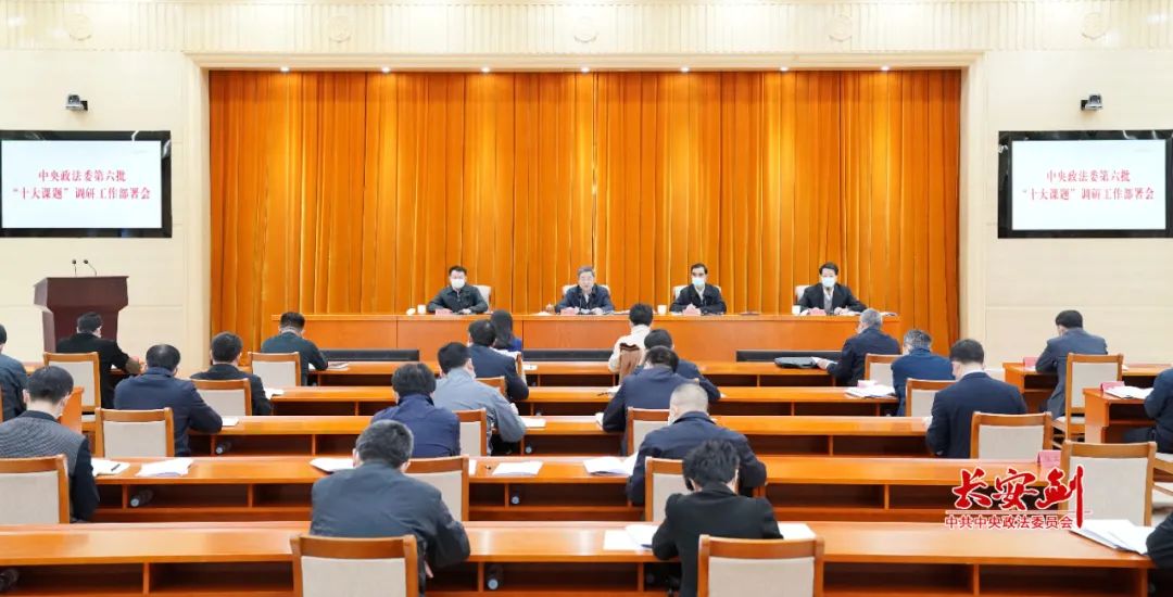 近日,中央政法委召开第六批“十大课题”调研工作部署会,认真学习贯彻党的十九届五中全会、中央全面依法治国工作会议和平安中国建设工作会议精神,总结中央政法委第五批“十大课题”调研工作,部署第六批“十大课题”调研任务,推动新时代政法工作创新发展。中央政法委秘书长陈一新强调,调研工作要重“选题”“破题”“领题”“评题”,以严谨细致的作风,以科学方法手段,促进调查研究常做常新常效,为新时代政法工作创新发展开路。