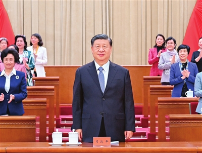10月23日,中国妇女第十三次全国代表大会在北京人民大会堂开幕。这是中共中央总书记、国家主席、中央军委主席习近平在主席台向与会代表致意。