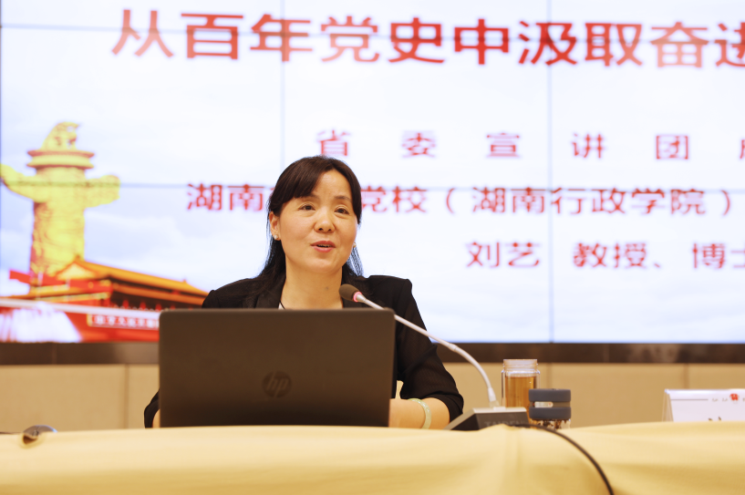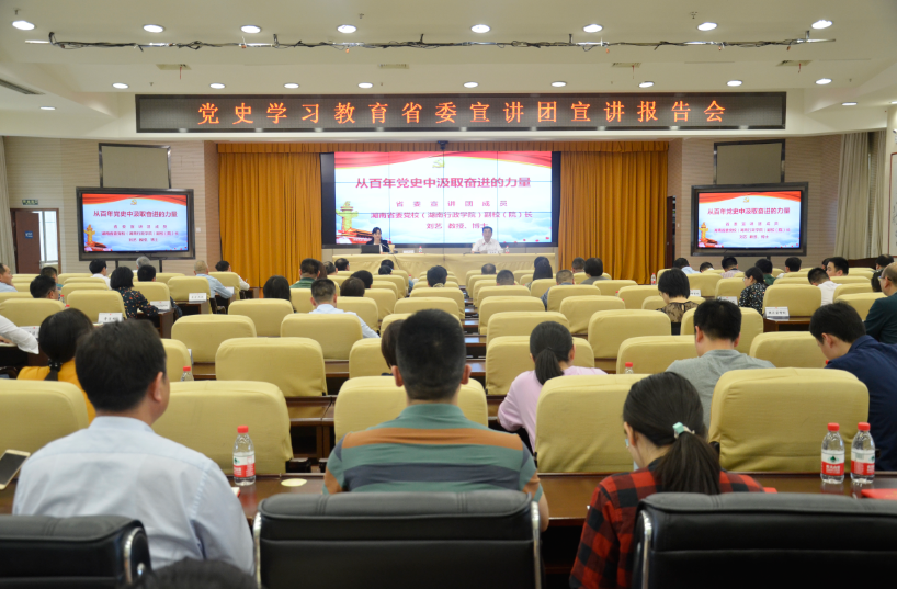刘艺以学习贯彻习近平总书记在党史学习教育动员大会上的重要讲话精神为主线,从切实增强党史学习教育的政治自觉和行动自觉、全面了解中国共产党百年奋斗的光辉历程和历史贡献、深刻感悟百年党史湖南篇章的作为与担当、把握党史学习教育的重点要点等4个方面进行了深入浅出的讲解。报告站位高、视野宽、内容实,宣讲充满激情、通俗易懂,为推动党史学习教育走深走实、准确把握习近平新时代中国特色社会主义思想提供了有力指导,大家深受启发、颇有收获。