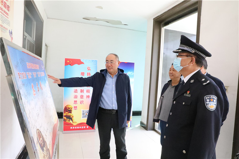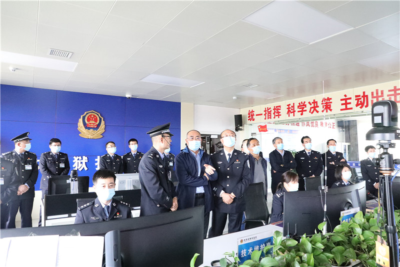 5月8日,陕西省政府参事、省委政法队伍教育整顿第七指导组组长赵荣一行5人深入榆林监狱开展指导工作,省监狱局队伍教育整顿暨监狱综合治理第二指导组一同检查。
