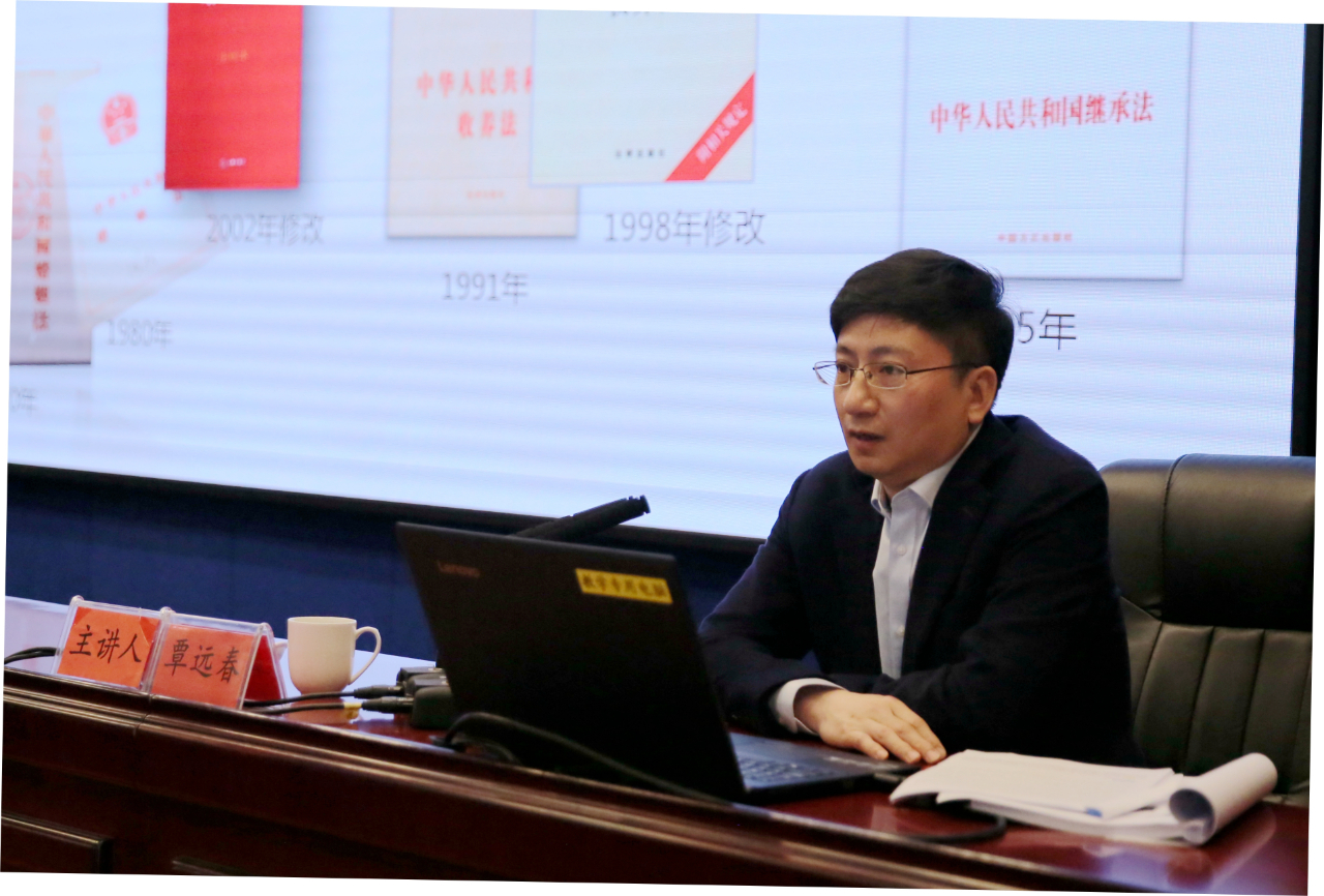 贵州财经大学法学教授、硕士生导师、北京市浩天信和(贵阳)律师事务所律师覃远春以《民法典婚姻家庭编、继承编常用法律知识要点》为题, 通过问题引导的方式,详细阐释了民法典婚姻家庭编和继承编中关于结婚、家庭关系、离婚、收养、法定继承、遗嘱继承和遗赠等八个方面的重要内容。