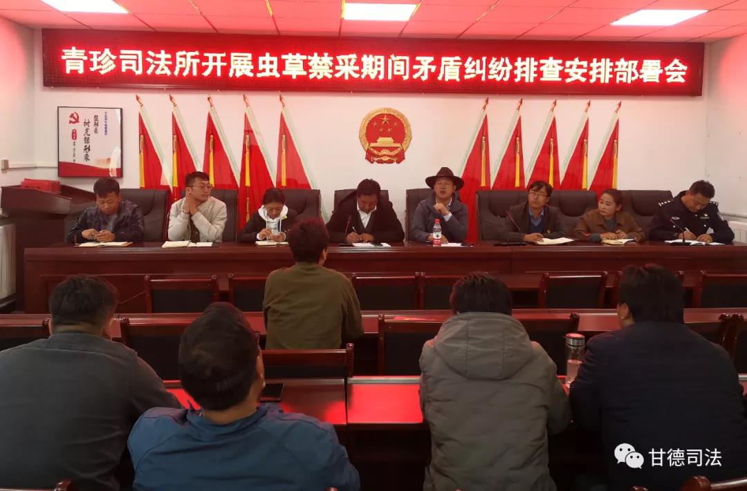 为进一步维护青珍乡的和谐稳定,严防虫草禁采期间发生不良事件,青珍乡党委、政府联合乡司法所于5月9日上午召开了虫草禁采期间矛盾纠纷排查安排部署会会。