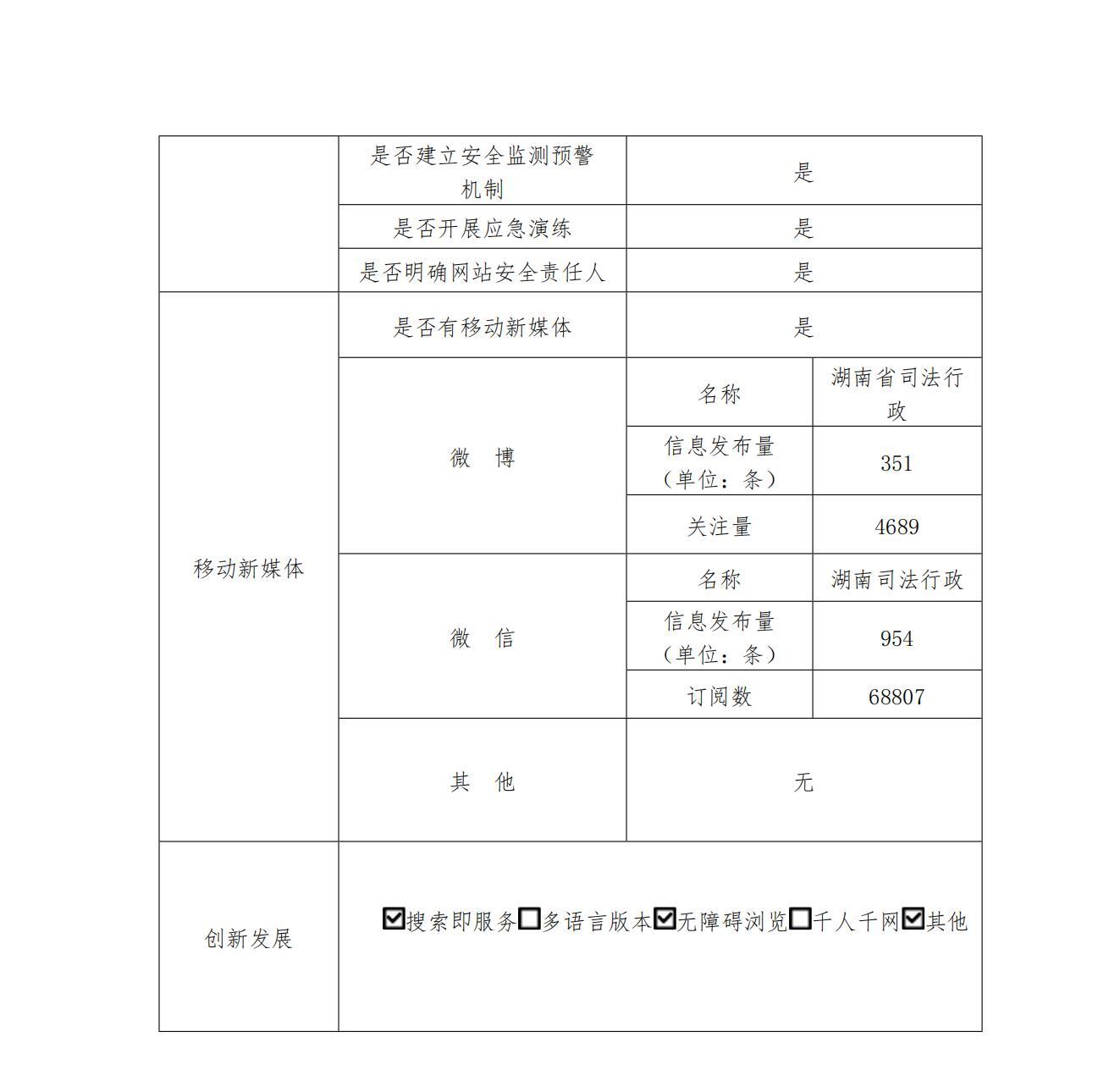 根据国务院办公厅《关于做好政府网站年度报表发布工作的通知》(国办函〔2018〕12号)和湖南省人民政府办公厅《关于做好政府网站年度报表发布工作的通知》(湘政办明电〔2018〕7号)要求,我厅认真完成了本年度《政府网站工作年度报表》编制工作,现公布2023年“湖南司法行政网”的网站年度报表。