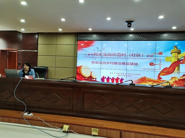 遵义市司法局普法与依法治理科科长任世群领学《中华人民共和国乡村振兴促进法》《贵州省法治宣传教育条例》,并作题为“抓实民主法治示范村(社区)创建,夯实法治乡村建设基层基础”的业务培训。任世群从充分认识法治乡村建设的意义、我市民主法治示范村(社区)工作开展情况、怎样创建民主法治示范村(社区)、创建民主法治示范村(社区)需注意的事项四个板块,全面系统地阐释法治乡村建设的由来及意义,深入浅出地讲解民主法治示范村(社区)所蕴含的“五民主三公开”制度内容,严谨细致地介绍做好乡村、社区法治宣传教育工作应重点关注的事项。