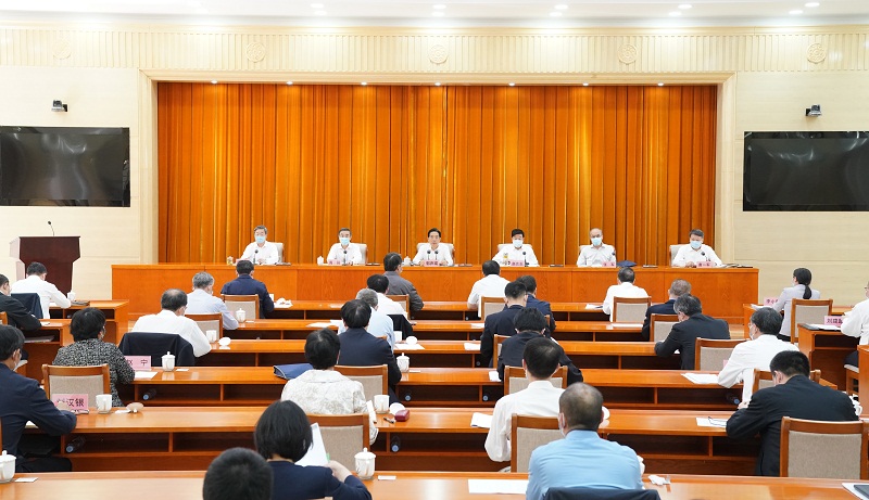 5月17日,中共中央政治局委员、中央政法委书记、中央依法治国办主任郭声琨出席落实中央全面依法治国委员会2021年工作任务部署会并讲话。 摄影 郝帆