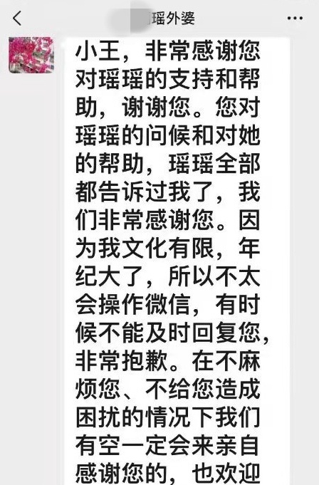 “小王,非常感谢您对瑶瑶的支持和帮助,谢谢您……”5月17日,重庆市未成年犯管教所特警大队民警王朝成收到了他资助的一名学生瑶瑶(化名)的外婆发来的微信。