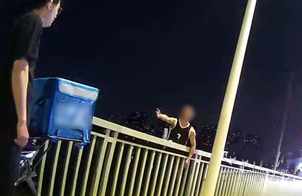 抵达现场时,只见男子情绪异常激动,半只脚悬空地踩在护栏外侧的石墩上,仅用一只手抓着大桥的护栏,另一只手则在空中胡乱比画着。付增慧立即安排辅警维护现场秩序,避免行人聚集围观刺激男子情绪。