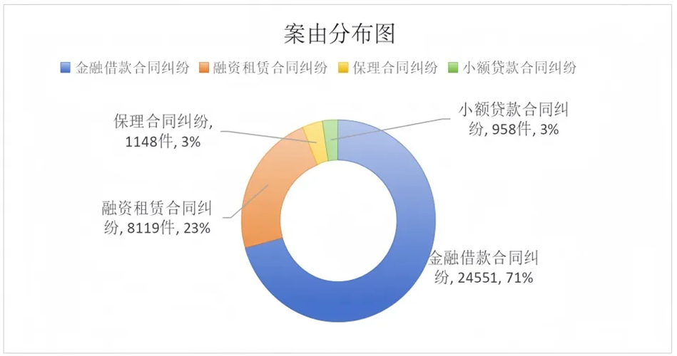 白皮书显示,2023年上海法院共受理一审金融商事案件219549件,审结219198件,标的总金额2024.6亿元。其中,收案数量排名前五位的案件类型,分别为金融借款合同纠纷、信用卡纠纷、融资租赁合同纠纷、保证保险合同纠纷及追偿权纠纷,合计占一审金融商事案件总数的96.66%。