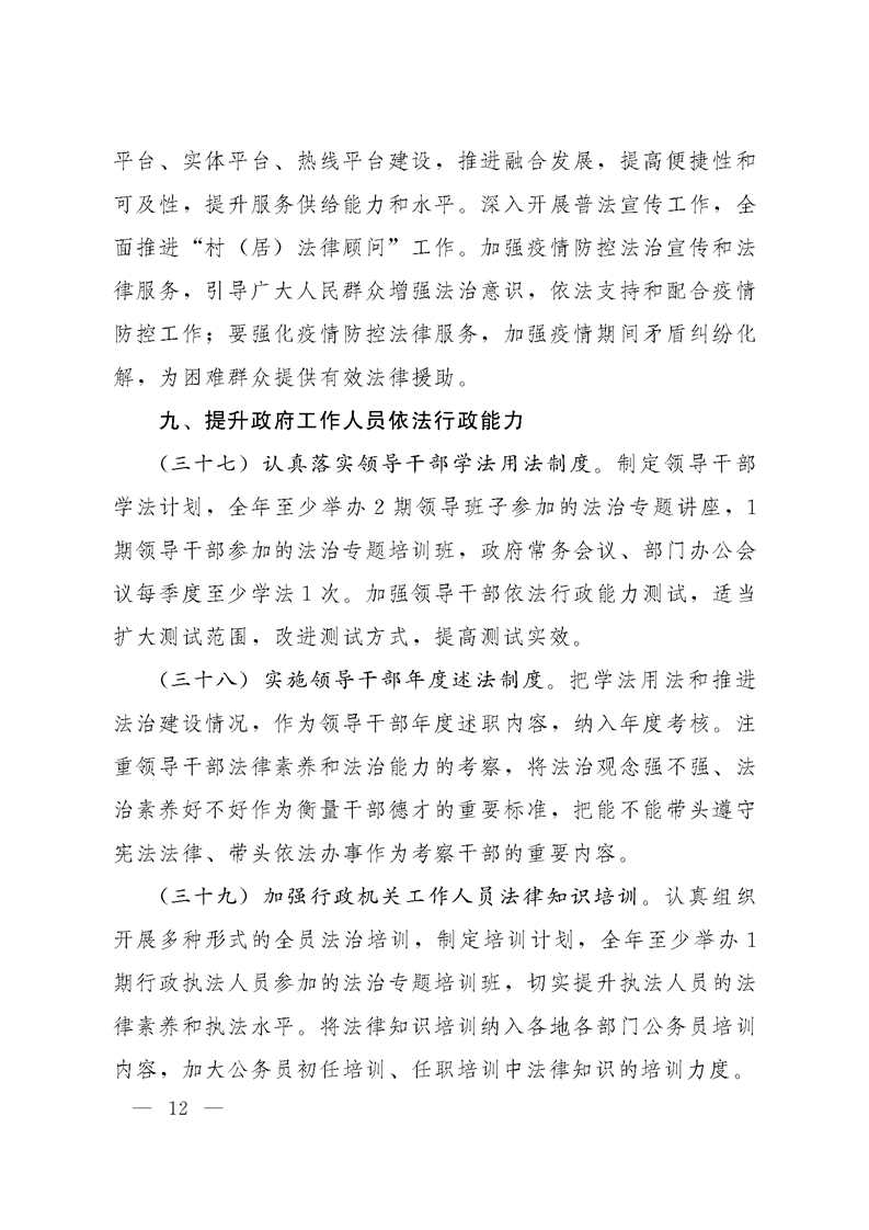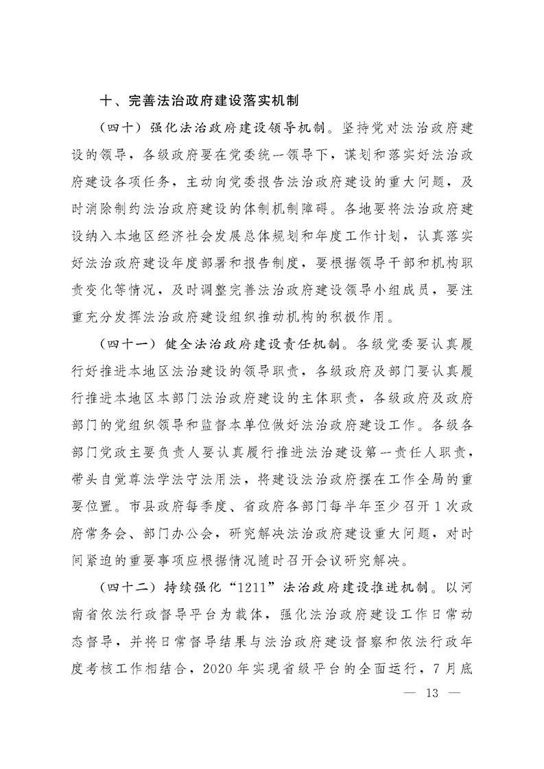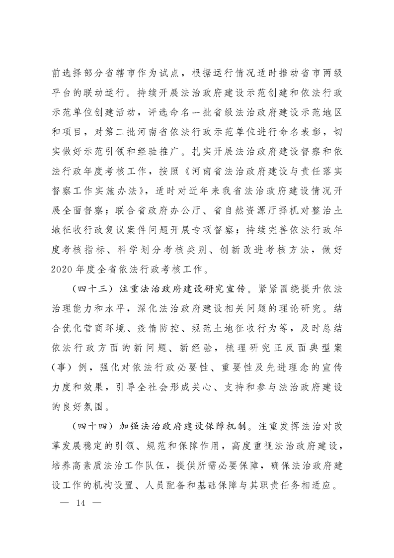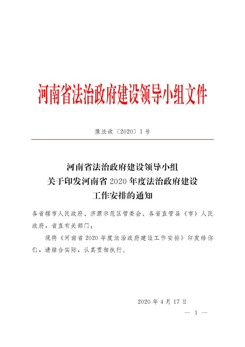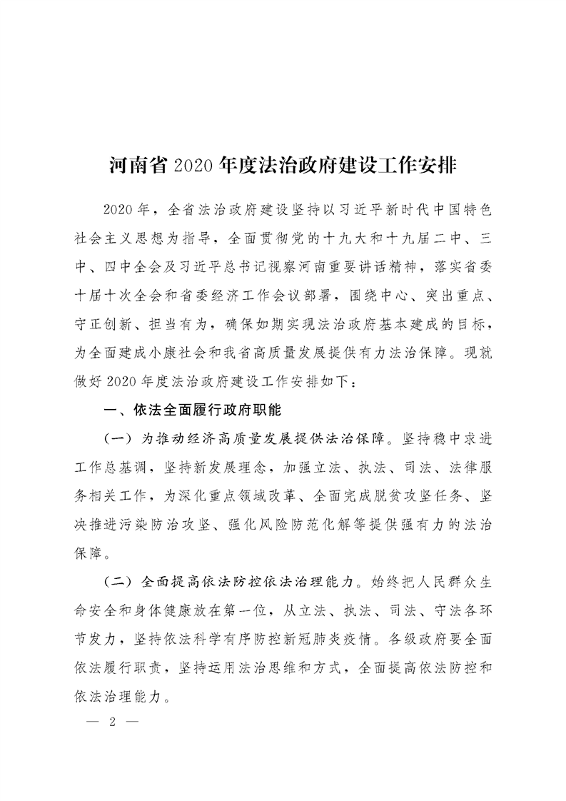 河南省法治政府建设领导小组关于印发河南省2020年度法治政府建设工作安排的通知