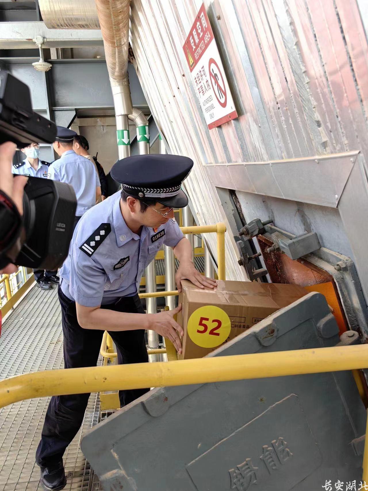 上午9时许,在蔡甸区某危化物品处理厂内看到,印有“毒品”字样的纸箱整齐摆放在热解炉前,里面装满了此次集中销毁的毒品,数名全副武装的特警在现场警戒。