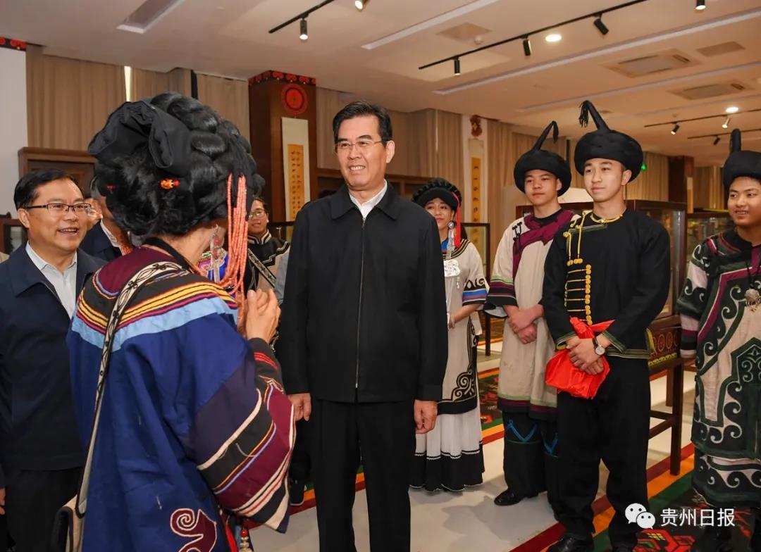 5月17日正值贵州民族大学建校70周年纪念日。18日上午,李炳军首先来到民族民间文化综合展示馆,详细了解学校70年办学成果,参观民族民间文化传承创新成果展,与师生亲切交流,鼓励大家保护好、传承好少数民族文化,结合市场需求,把传统工艺转化为文创产品,把文化优势转化为产业优势。李炳军还看望了老教授、中青年骨干教师代表和学校班子成员,向他们致以热烈祝贺和诚挚问候。