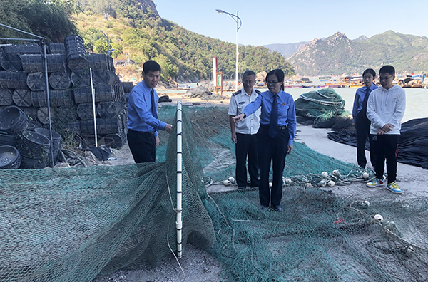 宁德市检察院办案团队前往三都澳海域,对海漂垃圾治理“回头看”
