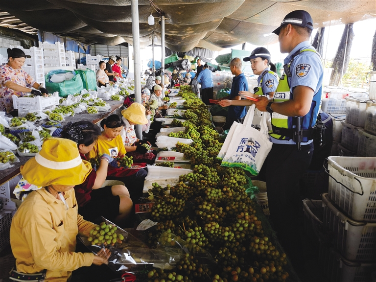 5月以来,海南东方市大田镇的芒果、阳光玫瑰葡萄等水果迎来了丰收采摘季。果园内外、村道上,大小货车、农用三轮车、电动自行车等车辆来来往往,络绎不绝。采摘工人早出晚归,在果园内外忙碌着。 东方交警宣传员向水果包装工人普及交通安全知识。记者董林摄 “交警同志,为你们的宣传点赞。上次你们讲的,我们没忘记,不超载、骑车要佩戴好头盔、经过路口时要减速,左顾右盼确认安全再通过……”5月23日,看到交警到果园宣传交通安全知识,东方市大田镇阳光玫瑰葡萄果园里的采摘工人笑着说。 据了解,为确保采摘季辖区道路交通安全,东方市公安局交通警察大队结合“美丽乡村行”主题宣传活动,组建宣传小分队走进村庄、果园、收购点、分拣工棚等场所,通过聊家常、举事例、谈教训的方式,和村民、果农、果商及采摘工人“零距离”共话交通安全,从源头上预防道路交通事故的发生。 以“身边事”警醒“身边人” “辖区部分农村交通参与者的交通安全意识淡薄,驾驶农用车违法载人、人货混装、超载等交通违法行为时有发生,存在安全隐患。”东方市公安局交警大队相关负责人告诉记者,结合水果丰收时节的交通特点,该大队下沉警力,面对面向群众讲解交通安全常识,呼吁大家自觉遵守交通法规。 当天上午,东方交警宣传小分队民警、辅警在大田镇抱板村开展交通安全宣传时,发现一名果农从自家芒果园采摘芒果并在公路边摆摊售卖,公路来往车辆较多且车速快,存在交通安全隐患,于是上前劝说并进行交通安全宣传。 “我把摊子摆在道路外,也不行吗?又不占道。”面对民警的劝说,果农李女士满脸疑惑。 “国省道上车辆来来往往,车辆的速度快。万一有车辆因操作不当引发事故,很可能对你的人身安全造成危害。如果有人停车来买芒果,也会造成交通拥堵,存在一定的安全隐患。”民警结合相关案例,以案释法,使李女士深刻认识到潜在的交通安全风险,并帮忙将芒果转至附近的市场售卖。 “不要看到交警才戴头盔,我们出行一定要戴好头盔。”“要贴反光条,这样人家远远就能看到你的车。”“三轮车后车厢是不允许坐人的。”在大田镇抱板村,民警通过当面宣讲、发放宣传资料等方式,向群众普及交通安全知识、提醒出行注意事项、讲解各类交通违法行为的危害,以“身边事”警醒“身边人”,引导群众绷紧“安全弦”,做到文明出行、安全出行。 同时,对村民提出的交通安全法律法规、车驾管业务办理等方面的问题,民警逐一答疑解惑,获得群众的好评。 田间地头宣传交通安全 “开车装货时不要超载,行驶也不能超速。”“不要超员,更不能人货混装。”“你们辛苦一天,回家的时候千万不能疲劳驾驶。”在大田镇阳光玫瑰葡萄果园的分拣工棚里,民警通过发放宣传手册、面对面宣讲的方式,向正在忙碌的工人讲解“三超一疲劳”等交通违法行为的危害。 活动中,民警、辅警分组行动,与采摘工人拉家常,通过讲解交通事故案例,深刻剖析事故的诱发原因,叮嘱他们不骑乘无牌、无证摩托车,不酒后驾驶车辆,不乘坐超员超载等违法违规车辆。民警、辅警重点宣传拖拉机、三轮车、货车违法载人,人货混载,行人、摩托车、农用车等违法上高速公路等交通违法行为的危害和后果。 “请听题,假如我骑这辆车装了5箱葡萄,后面还坐着3名工友,请问,我存在哪些违法行为?”为了让交通安全知识入心入脑,宣传民警顺手指向工棚旁边一辆反光标识不全的三轮车,向采摘工人提问。 “三轮车违法载人”“人货混装在一起”“车身反光条不明显”……工人们时不时停下手中的活,纷纷举手抢答,现场氛围热烈。随着一个个交通安全知识问题正确回答,一件件印有交通安全宣传标语的环保购物袋等礼品也被发放到工人手中,实现了现场学法答题赢好礼。 “弯路多、路面窄,车辆来回穿梭,我们一定要注意四方来车和行人,多一分谨慎,就会少一点事故风险……”临近中午,民警、辅警仍忙碌在田间地头,宣传交通安全知识,播撒“交通安全种子”。(许光伟 董林)