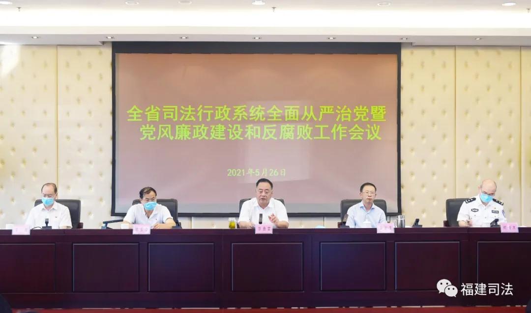 5月26日下午,省司法厅召开2021年全省司法行政系统全面从严治党暨党风廉政建设和反腐败工作视频会议,回顾总结2020年以来从严治党和反腐倡廉工作情况,研究部署今后一个时期工作任务。会议由厅党委委员、副厅长、一级巡视员黄岩生主持,厅党委书记、厅长邬勇雷出席会议并讲话。