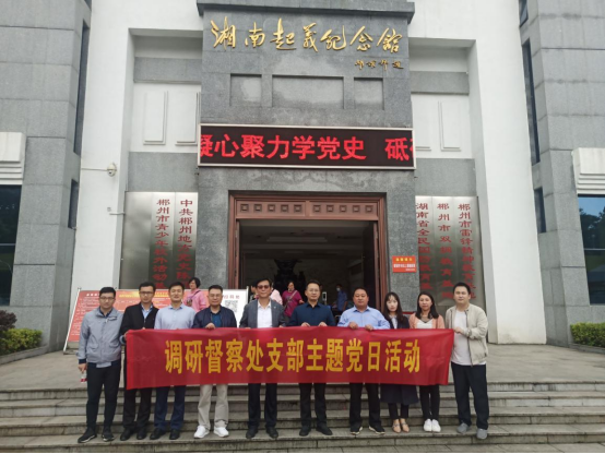 支部全体党员到湘南纪念馆瞻仰革命烈士纪念碑,敬献花篮,在纪念碑前庄严肃立,重温入党誓词。随后在纪念馆展厅参观、回顾了湘南起义“浴血重生朱德率部奔湘南”“风展赤帜百万之众斗敌顽”“波澜壮阔创建苏维埃政权”“战略转移湘南义军赴井冈”“千秋史册伟绩闪耀功勋榜”五个部分的光辉历程,重温了革命先辈们在枪林弹雨中带领湘南人民投身革命的壮举。