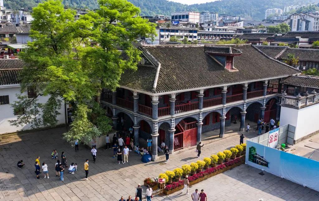 游客在遵义会议会址参观(5月3日摄,无人机照片)。新华社记者陶亮摄