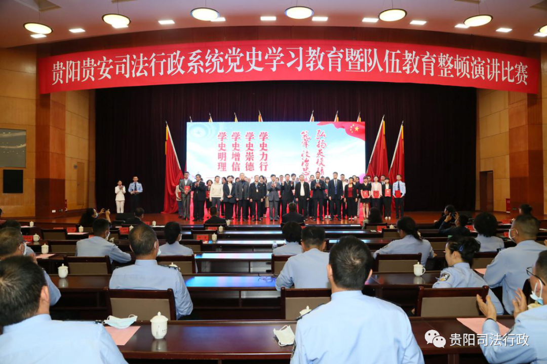 为深入学习贯彻习近平总书记关于党史学习教育的重要讲话精神及关于政法队伍教育整顿重要指示精神,推进党史学习教育和政法队伍教育整顿走深走实,2021年5月25日,贵阳贵安司法行政系统在金阳会场隆重举行党史学习教育暨“牢记殷切嘱托、忠诚干净担当、喜迎建党百年”演讲比赛。