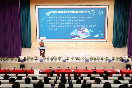聘任仪式后,同学们观看校园欺凌法治情景剧,通过演员的表演,更加生动直观地感受到校园欺凌对未成年人身心健康的打击和伤害,对如何运用法律武器保护自己有了更加深刻的理解和认识。随后,李思思法官开展普法讲座,结合真实案例,向学生们详细讲解校园欺凌的成因、类型、危害以及正确处理校园欺凌的方法举措,并向同学们普及了民法典、未成年人保护法等法律规定,帮助青少年养成知法守法、遇事找法、解决问题靠法的思维习惯与行为方式,树立法治思维、法治精神和社会主义法治信仰。