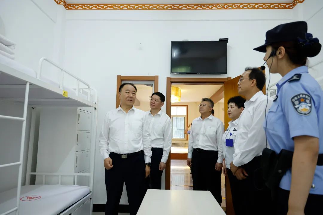 在辽宁省女子监狱,赵昌华一行先后来到罪犯监舍、罪犯配餐中心,实地了解民警执勤状态、罪犯日常管理、罪犯教育改造、监管设施安全等情况,认真听取相关工作汇报。