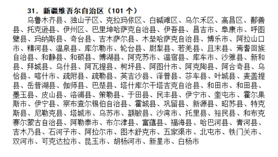 国家统一法律职业资格考试放宽地方名单(新疆部分)。