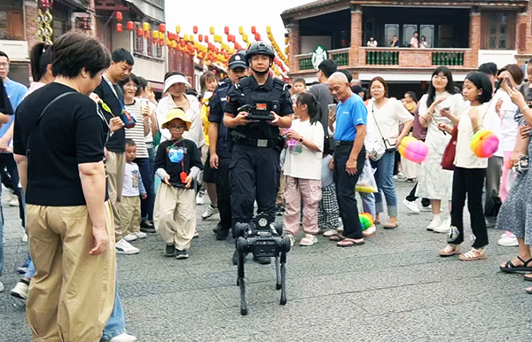 科技赋能一线实战,民警使用遥控机器狗开展智慧巡逻