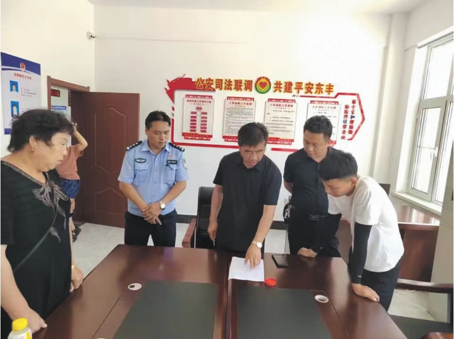 去年5月初,东丰县拉拉河镇某村李某与其家人产生矛盾,并出现互相辱骂、厮打等情况。接警后,派出所民警联系该镇司法所和驻所律师开展调解工作,促使双方达成和解。但在回访时民警了解到,双方又产生了新的意见分歧,于是再次与司法所干警一道,进行了妥善处置,最终促成矛盾彻底化解。