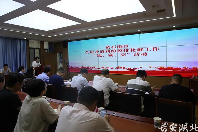 6月22日上午,一场由黄石市黄石港区委政法委组织主办的全量矛盾纠纷摸排化解工作“比、赛、亮”活动在区社会矛盾纠纷综合调处中心举行。区委副书记、区委政法委书记徐新勇以评委的身份出席活动并讲话。