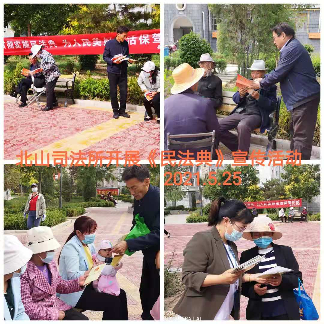 以此同时,在县局的统一安排部署下,各司法所也在辖区内积极开展了不同形式的民法典宣传活动。北山司法所工作人员在北山新村各小区文化广场开展《民法典》宣传活动;松树司法所利用松树幼儿园举办六一儿童节之际开展了以“美好生活﹒民法典相伴”为主题的普法宣传活动;西沟司法所在西沟乡集市开展“民法典,与生活同行”主题宣传活动;转导司法所在转导乡政府会议室给全乡宗教教职人员开展了《民法典》普法讲座;总堡司法所在辖区内进村入户开展了民法典法治宣传活动。