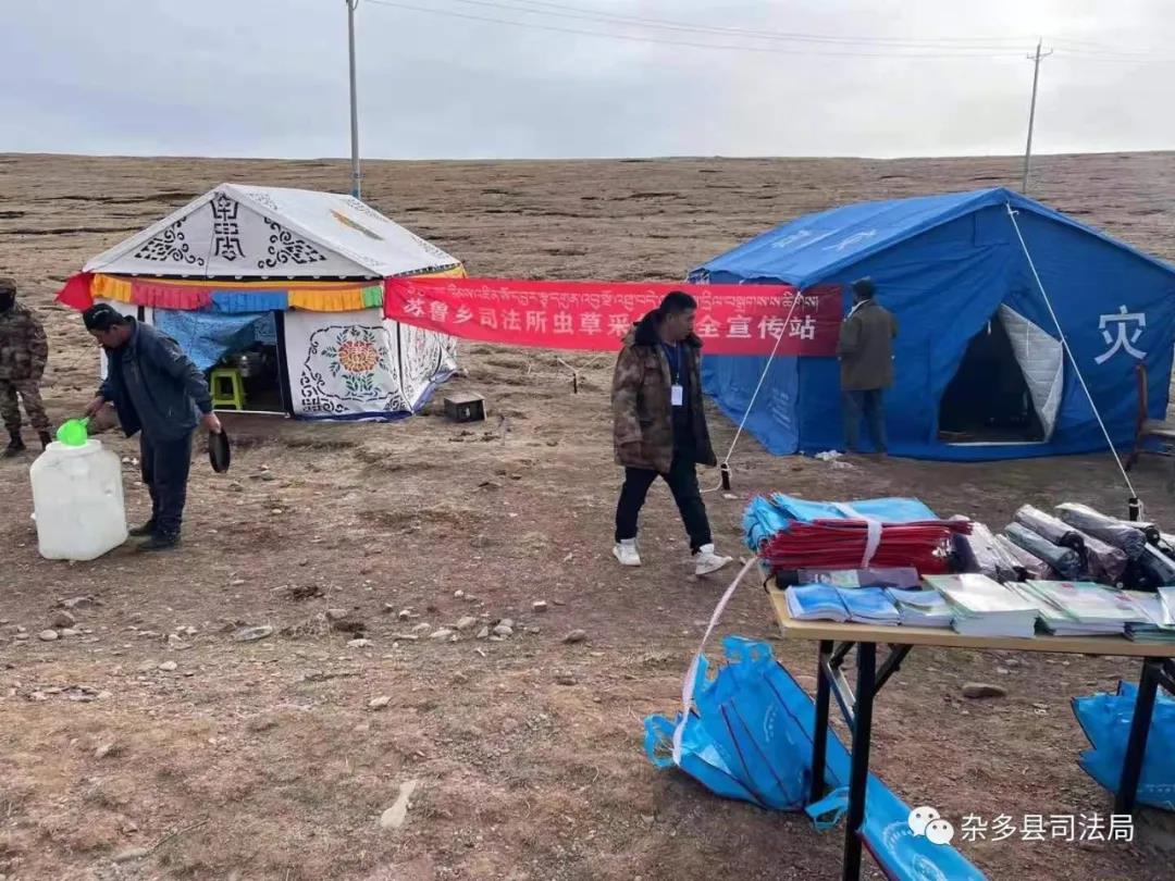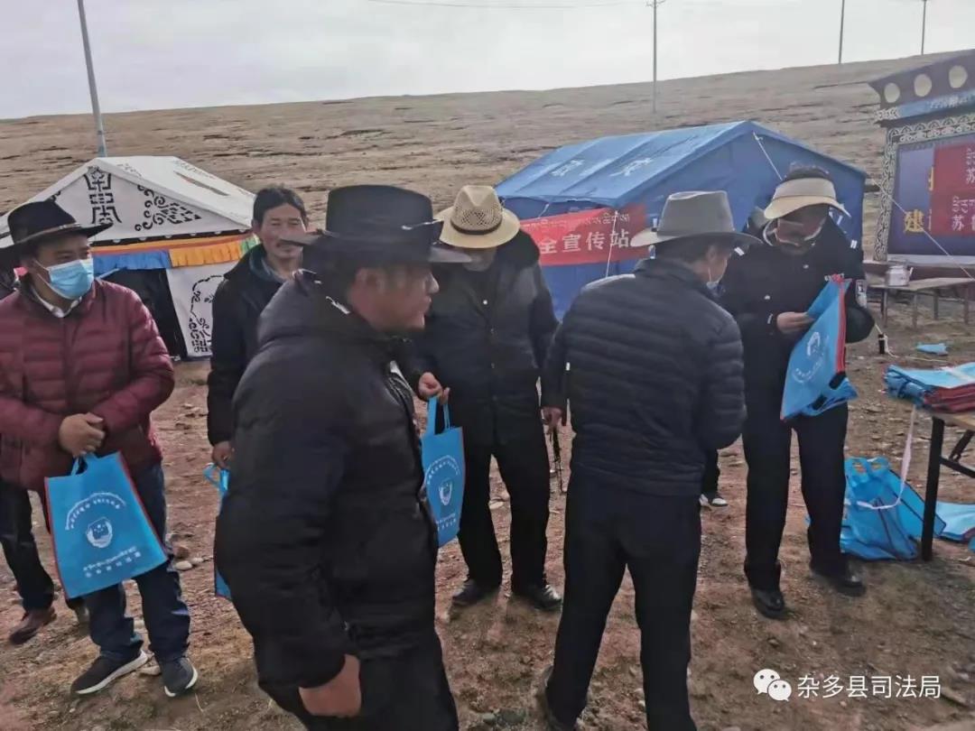 我为群众办实事,真情实意解民忧。5月17日,扎青乡司法所一是组织工作人员对本辖区前往牧区采挖虫草人群开展了法律咨询服务暨司法为民公开大接访活动,主要宣讲《草原法》《环境保护法》《百姓法律知识百问》中的法律法规,通过“以案释法”向群众宣讲与虫草采挖相关的法律法规和政策规定,并重点回应群众咨询,说明虫草采挖时期有可能引发的矛盾纠纷和后果,切实把政策法规讲清楚、讲明白、讲透彻。此次活动共发放宣传单300多份,受教育群众达20余人次。二是结合虫草采挖期多为雷电多发、频发期的实际情况,深入扎青乡杂瓦桑多虫草采集管理工作服务站集中开展普法宣传暨防雷科普宣传活动,切实保护人民群众生命财产安全。累计发放《防雷手册》《民法典》《网络安全手册》等宣传手册、画册60余份,法治小礼品(雨伞、纸巾、手提袋)共110余(件/盒/袋),受宣群众50余人次。