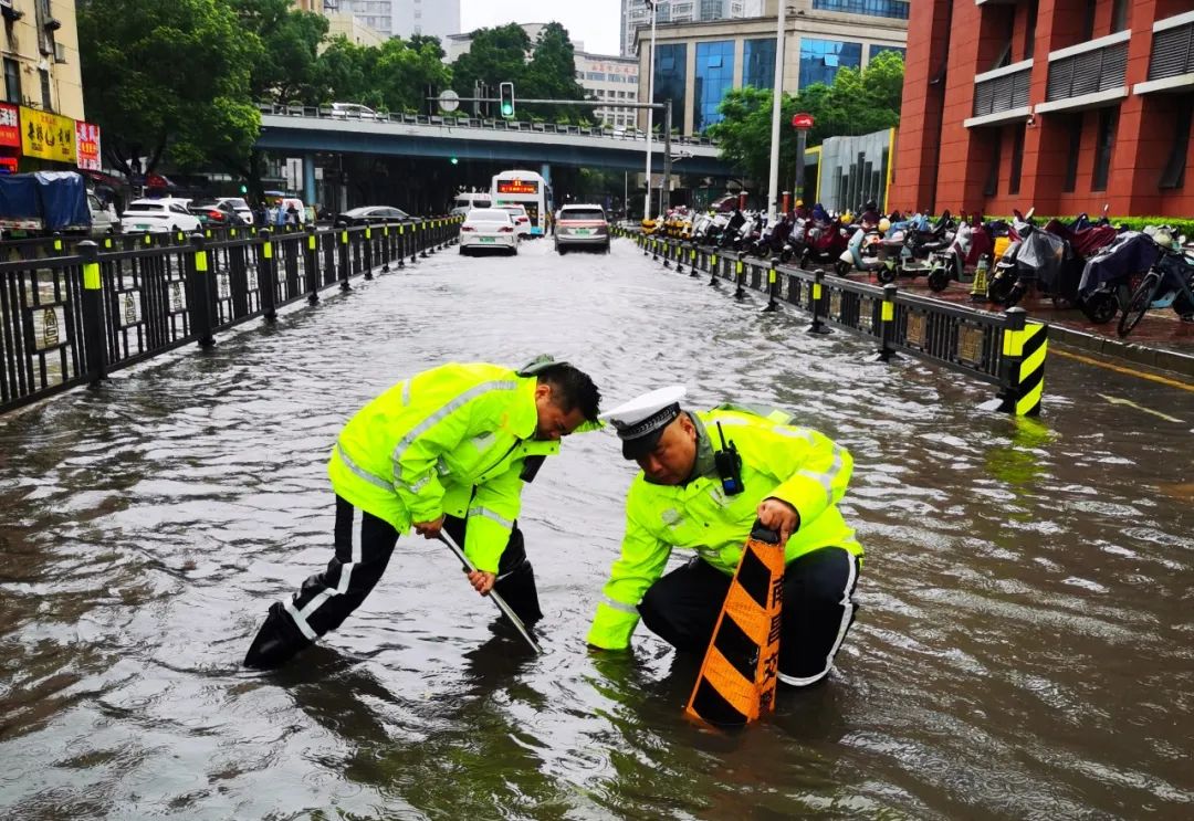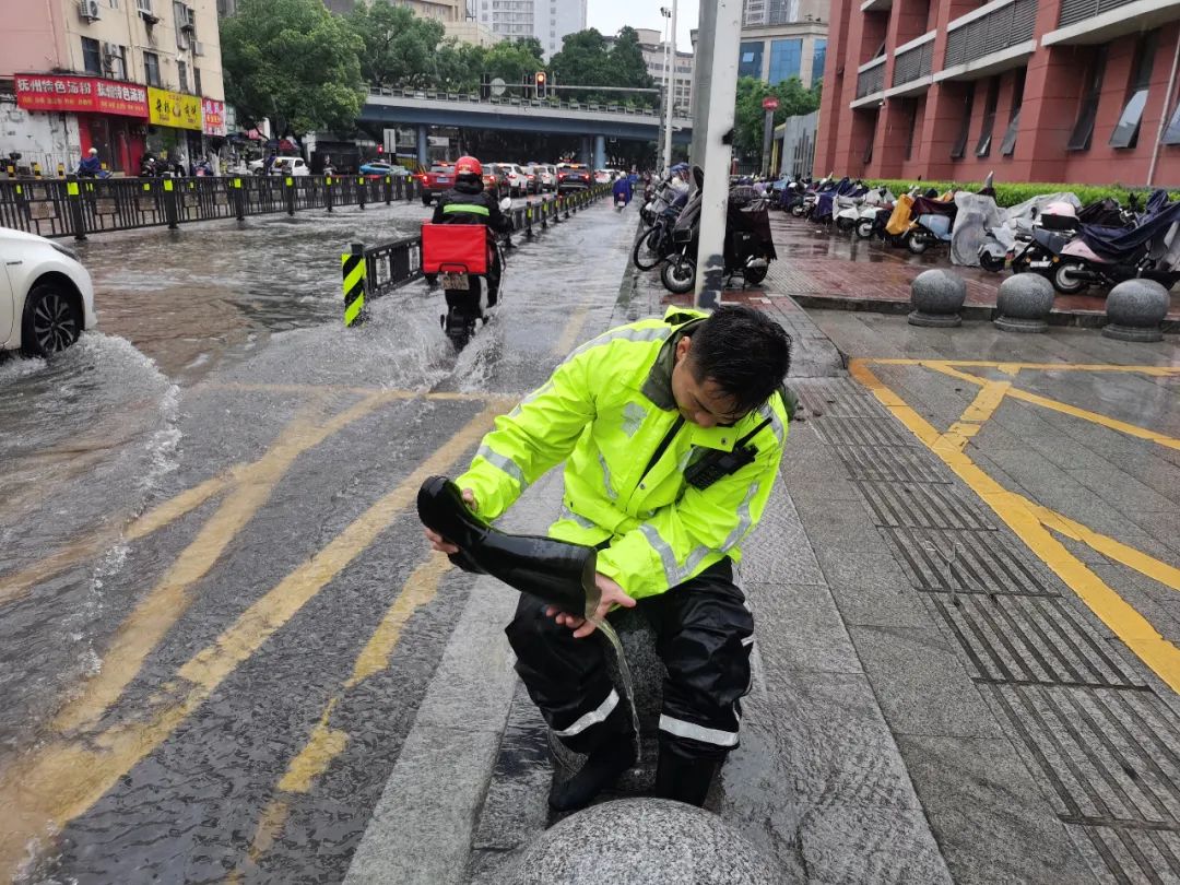 6月24日上午 一场暴雨侵袭南昌 短时间强降雨导致部分道路出现积水 给出行和生活带来不便 南昌公安闻“汛”而动 民辅警奋战在防汛排涝一线 筑牢城市防汛“安全线” 为人民群众安全出行 和生命财产安全提供坚实保障 ▲南昌交警化身“人形立标”,站在积水中指挥交通,确保车辆安全通行。 ▲交警引导车辆安全的通过积水区域。 ▲民警帮助群众走过积水路段。 ▲民辅警在疏通被堵下水道后,倾倒雨鞋中的雨水。 ▲受暴雨影响,市区部分路段发生内涝,南昌市公安局红谷滩分局卫东派出所民警紧急出动在怡园路当起了临时“交通疏导员”,维持路面秩序,帮助熄火车辆驶离深水区。 ▲南昌市公安局红谷滩分局龙兴派出所社区民警带领辅警,联合街办及村干部,转移救助被困群众。 ▲辖区群众求助,沁园路小区下水道被堵,红谷滩分局巡逻队员立即前往清理,疏通小区堵塞下水道。 ▲辖区群众报警求助,因雨太大无法回家,沙井派出所值班民辅警立即前往现场,帮助被困的群众安全回家。 ▲暴雨天气,南昌市安义县公安局凤凰山派出所民警深入企业走访排查安全隐患。 ▲南昌市安义县公安局民警在路面开展风险隐患排查,引导过往车辆避开涉水路段。 ▲南昌市进贤县公安局交警大队钟陵中队接到报警求助,在钟陵乡与东乡交界处,有一辆面包车陷入马路牙子出不来,民辅警接到报警求助后立即前往现场,用千斤顶将车身顶高,寻找石块垫在车轮下。由于暴雨天气路面湿滑,给救援行动增加了难度,最终历经2小时,面包车终于被救上来。 大雨还在持续中 但总有一抹颜色 守护着你我的平安 |
