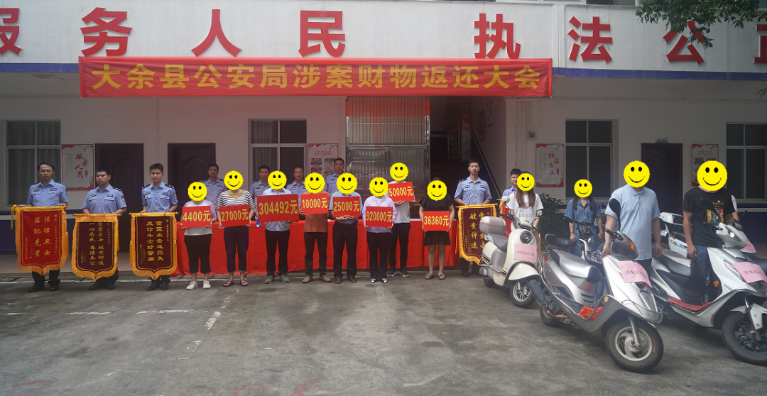 6月13日上午 赣州市大余县公安局在刑侦大队 举行涉案财物返还大会 现场向20余名群众发还已追回的 现金共计60万余元 黄金首饰、电动车、 笔记本电脑、高档烟酒若干 公安机关向在场群众 将近期破获的电信网络诈骗、盗窃等 案件中追回的涉案财物集中返还受害人 最后 民警向群众发放宣传资料 并结合实际案例宣传 反诈、防溺水、禁毒、反邪 等安全防范知识 提醒群众增强自我防护意识 青龙派出所为群众找回丢失的手机 新城派出所破获一起店铺盗窃案,为群众追回被盗现金 池江派出所为群众找回丢失的电动车 南安派出所破案挽损,返还群众被盗现金 6月14日上午 赣州市信丰县公安局 举行涉案财物返还大会 集中公开向受害群众 现场返还追缴的现金、手机、香烟 电动车、空调等被盗被骗财物 合计价值约60余万元 活动现场 公安机关将近期破获的 电信网络诈骗、盗窃等案件中追回的 涉案财物依次返还给受害群众 领回失而复得的财物 失主们激动的心情溢于言表 当场向警方赠送锦旗 对公安机关表示感谢 “真感谢你们 平时上下班就靠它了, 现在找回来了,心里真舒坦!” 涉案财物返还大会上 群众从民警手中接过失而复得的电动车 满是感慨地说道 除此之外 各辖区派出所组织开展 涉案财物返还大会和“上门退赃” 将近期破获的各类盗窃案中的涉案物品 返还给受害群众 6月18日上午 赣州兴国县公安局 举行发还涉案财物现场会 集中公开向受害群众 现场返还追缴的现金、电脑、手机 电动车、自行车和烟酒等被盗被骗财物 合计价值100余万元 活动现场 公安机关将近期破获的 电信网络诈骗、盗窃等案件中 追回的涉案财物 依次返还给受害群众 警方始终牢固树立 “以人民为中心”发展理念 聚焦侵财性案件 坚持打防结合、破案追赃并重 先后开展“2024-春雷行动” “反盗窃”等一系列专项行动 全力为人民群众追赃挽损 “真是非常感谢你们 及时为我们挽回了损失!” 发还涉案财物现场会上 群众从民警手中接过被盗财物 满是感慨地说道 领回失而复得的财物 失主们激动的心情溢于言表 当场向警方赠送锦旗 下一步 警方将持续保持高压严打态势 以更加有力有效的举措 亮利剑、出重拳 持续对突出违法犯罪发起凌厉攻势 多破小案、快破大案、力破积案 积极回应人民群众的期待 |