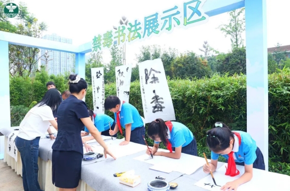 活动中,学生代表、企业禁毒联盟代表和高校禁毒联盟代表分别发言,纷纷表示珍爱生命、拒绝毒品,并将积极参与禁毒宣传等工作。部分书法爱好者代表则现场创作书法作品,助力崇州禁毒工作。