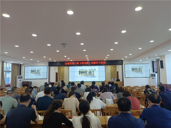 5月26日,运城市审计局中心组党组扩大会议召开民法典专题学习,结合审计执法情况,集中学习了习近平总书记2020年5月29日在十九届中央政治局第二十次集体学习时的讲话精神和民法典总编第六章“民事法律行为”。5月27日,市审计局法律顾问面向全体审计人员开展了一次民法典专题讲座,法律顾问向大家讲授了贴近生活的法律条文,使大家对民法典保障人民权益有了更深刻的理解。市审计局还制作了“民法典——社会生活的百科全书”海报宣传页,发放至局驻夏县扶贫工作队、局定点服务鸿晋社区及企业科审计组,组织张贴并宣传。