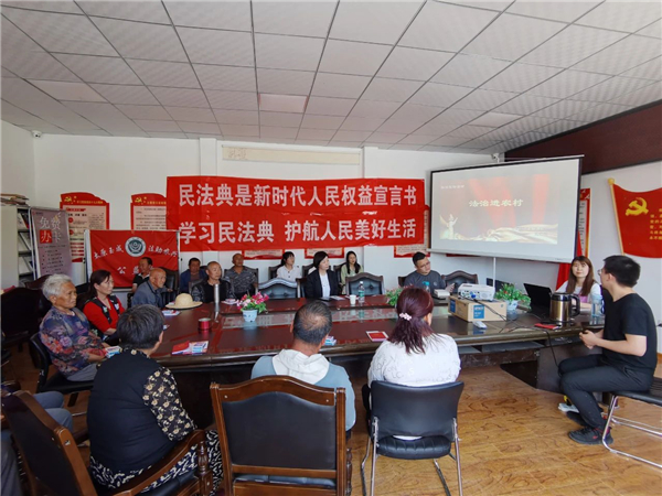 5月25日,太谷区胡村司法所联合明星法律服务所,深入董村开展民法典普法宣传活动。通过广播、微信宣传、有奖竞答、发放宣传资料等方式,向村民普及民法典的主要内容、亮点特色及重大意义。同时,针对村民提出的民事法律问题,法律服务工作者根据民法典中的相关法律法规进行一一解答。