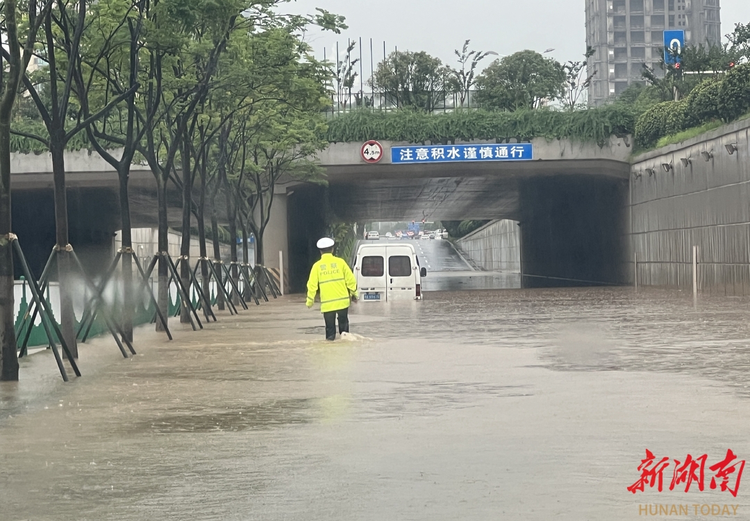 上半身制服齐齐整整,“荧光绿”背心惹人注目,裤腿却高高卷起,脚踩凉鞋。26日上午10时,记者见到梁亮贤时,他的警容看上去有些“违和”。 “梁队,长托路花侯路口发生事故,我现在去处理。”对讲机里传来同事声音。 “收到,顺便看下积水情况,检查下水道排水口。”梁亮贤脸色有些苍白,边擤鼻涕边快速回复。 作为长沙市公安局交警支队雨花大队十中队中队长,36岁的梁亮贤已有15年党龄和警龄,他刚刚经历了“折腾”的汛期24小时。 6月24日,劳动路雨花大道下沉涵洞,梁亮贤涉水检查被困车辆。 “前天正开着会,我被领导‘撵出’了会场。”梁亮贤笑了笑。 6月24日上午8时30分,雨花交警大队召开防汛工作部署会。会议刚开始,“长沙启动防汛IV级应急响应”的消息传来,梁亮贤被点名,“亮贤,你赶快返岗!” “劳动路黎托路南口积水严重!有车被困!”“长托路铁路桥涵洞积水严重,无法通行!”…… 对讲机里的汛情警报,一声接一声。返岗路上,梁亮贤心急如焚,“十中队辖区地势较低,有7处易积水点,早几天就因大雨多处积水,现在情况只会更糟。” “管制封路!迅速救援!清理排水口!”赶往现场的路上,梁亮贤反复调度。 赶到黎托路劳动路口后,眼看着有台小车被困,他把车往路边一靠,跑进大雨中。 “花侯路断电,红绿灯全熄了!”刚松口气,对讲机里传来的消息,让梁亮贤心头一紧,“早高峰,又是暴雨天,没有红绿灯会出乱子!” 要不断和大队汇报情况,还要急着赶往花侯路,梁亮贤恨不得长出三头六臂,见状,同事郭洁把他“赶”到副驾驶位,当起司机。 “车里灌水了!换警车吧?”踩着车里两三厘米深的积水,郭洁说道。 “警车在出警,搞不赢了,赶紧走吧!”梁亮贤已经顾不上自己开来的私家车了。 赶往花侯路的路上,梁亮贤挨个给轮休同事打电话催促返岗。同事们一句句“已返岗”,让他心安。 “我返岗了。”有13年党龄的中队指导员陈浩,当天凌晨4时才离岗,此时本应轮休,接到电话时已在积水路段执勤。 虽然自家小区已经被淹,原本排班在下午的52岁老党员高志胜仍然徒步赶往中队。 协警唐铭踏进水里,弓着腰清理排水口的垃圾。此时,他正发着烧。 …… 6月24日上午,52岁的交警高志胜在暴雨中执勤。 暴雨还在肆虐!10时30分,防汛应急响应升至Ⅲ级,“战况”愈发焦灼! 临近中午,雨花交警大队大队长陶理新下令,十中队作为“机动部队”,快速处警解决路面拥堵和积水。 花侯路机场高速南路口积水,堵车长达500多米,梁亮贤请公交公司支援,将一辆大客车横在路中封死路面,他和同事搬开路中间护栏,指挥车辆掉头绕行。 长托路平阳路口,湍急的洪水冲走了路障锥桶,封路全靠交警“手舞足蹈”。发现一艘龙舟漂在水上,梁亮贤和同事蹚进齐腰深的水里,把龙舟推到积水道路入口处,“这家伙蛮好,可以作为临时路障。” …… 待到雨势稍歇,各处险情稍缓,红绿灯恢复供电,梁亮贤紧绷的神经才稍许放松。一看表,已是下午4点多,正打算抽空填充辘辘饥肠,对讲机里又响起让人揪心的信息,“中队警力唐铭、王祖辉因长时间泡在水里,发高烧了。”顾不上吃饭,梁亮贤开车载上两位战友,赶往最近的社区医院。 “全力保障群众生命安全,也要保证自身安全,合理安排轮休。”雨花交警大队发来最新指令,梁亮贤迅速传达。 “雨还没停,涵洞积水严重,晚上车子进去会有危险,要有人守。”刚回家洗完澡吃点东西,放不下心的梁亮贤又开始和同事合计,“我们两两一组去各个涵洞口值守,夜里轮流在车上休息。” 香樟路花侯路下穿涵洞,这是梁亮贤给自己选的值守点。这里白天积水最深时超过3米,看着比人还高的深水,他总是担心发生群众落水等险情。 梁亮贤感到庆幸,当晚没有再下暴雨,凌晨4时,积水全部排空,他才放下心来,返回车上休息。 25日早上7时,新一天的早高峰开始了。 见涵洞积水已清,梁亮贤搬开路障,着手解除交通管制。不料,雨势突然加大,7时50分许,积水再次上涨,梁亮贤当即重新封路,并检查各处排水口。 幸运的是,这一轮暴雨未持续很久,大约9时,雨势渐弱。等来接替的同事,梁亮贤拧干裤腿,钻进被污水“泡臭”的车里。 “回去躺在床上,心里想的还是这下不完的雨啊。”梁亮贤笑着说。 24小时,中队辖区未发生一起致人伤亡的交通事故。梁亮贤擤了擤有点堵塞的鼻子,“休息一会儿,准备继续战斗。”