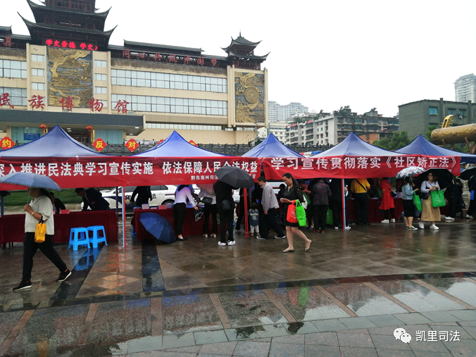 为深入贯彻落实习近平总书记关于民法典重要指示精神和在贵州视察中关于推进民法典实施的重要讲话精神,5月28日,《中华人民共和国民法典》迎来颁布一周年之际,黔东南州司法局、凯里市司法局牵头组织州、市117家相关部门234名普法志愿者在凯里市万博广场开展2021年“美好生活 民法典相伴”主题宣传月“一条街”集中宣传活动。 为统筹推进城乡公共法律服务一体化建设,全面保障民法典融入人民群众日常生活、融入基层依法治理,让民法典走到群众身边、走进群众心里,扎实促进凯里市全体公民法律素养的提升,在活动现场,各单位结合工作职能职责通过悬挂横幅、摆放工作成效及法律法规图展、发放《民法典》等法律法规宣传读本、生活适用物品围裙、水杯等为载体普法小礼品、现场开展法律服务咨询等方式全方位、多形式宣传民法典,有效提升了《民法典》是“社会生活的百科全书”的知晓率,本次活动共计发放《中华人民共和国民法典》《民法典与生活同行》《贵州省法治宣传教育工作条例》等普法宣传读本及各类宣传折页13000余份、发放各类普法小礼品1100件,悬挂《民法典》宣传横幅64条、开展法律服务咨询45人次。全市各镇街同步在辖区开展了“美好生活 民法典相伴”集中宣传活动。 下一步,市委依法治市办、市法宣办、市司法局将按照“推进民法典实施贵州省基层普法队伍‘万人大培训’”相关工作要求,加大村(居、社区)法律顾问及民法典宣讲团成员深入全市各机关单位、各村(居、社区)开展民法典宣讲,确保民法典深入民心,切实培育全社会办事依法、遇事找法、解决问题用法、化解矛盾靠法的良好法治环境。